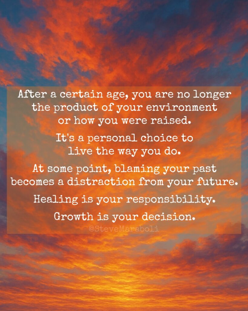 It’s a personal choice to live the way you do. At some point, blaming your past becomes a distraction from your future.